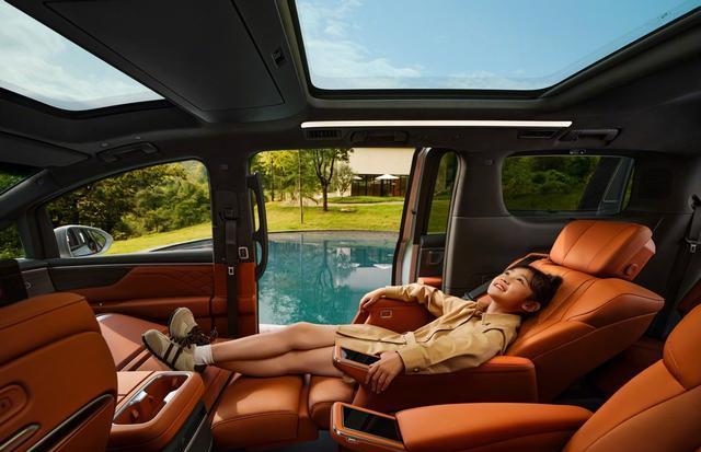 为提升乘客上下车的舒适度与便捷性,搭载空气悬架的版本可主动降低车身高度,配合支持手势控制的智控侧滑门,带来同级第一梯队的上下车体验。车尾最具辨识度的是光羽流焰贯穿式尾灯,灯组内嵌257颗超红光LED,即便在恶劣天气下也能保持高可见度,同时有效减少对后车司机的眩目干扰;此外,作为具备高阶辅助驾驶能力的车型,标志性的“逍遥智行”小蓝灯也巧妙融入尾灯组设计中。